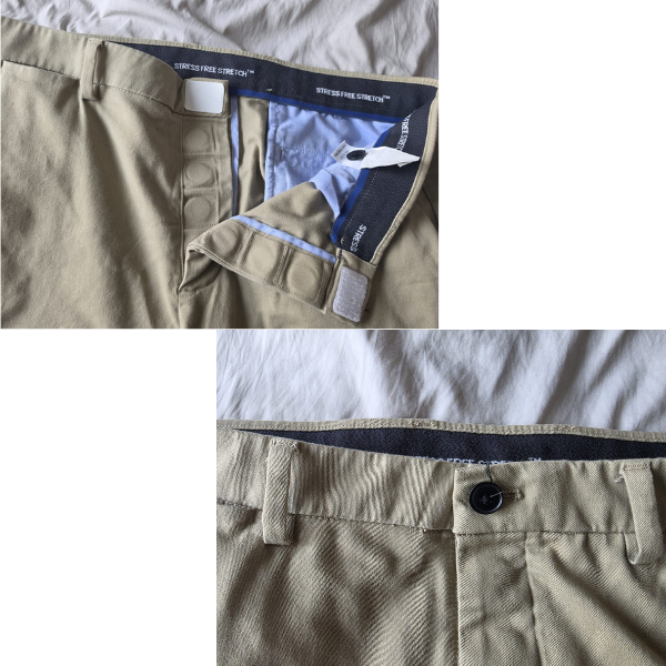 (Above:MagnaReady pants with magnets discreetly hidden behind the button—appearing completely normal from the front, with no visible difference at all.)